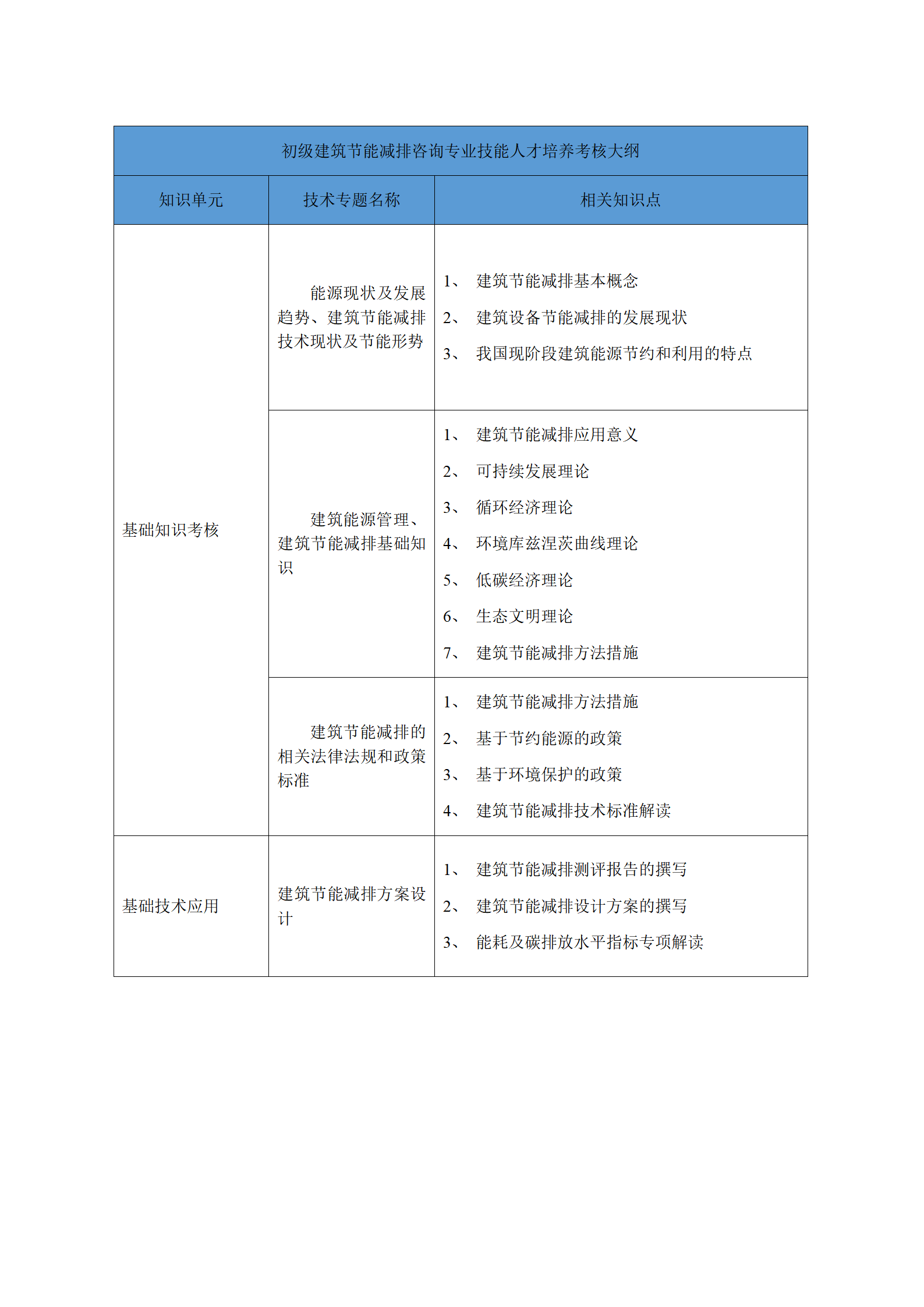初级建筑节能减排咨询专业技能人才培养考核大纲