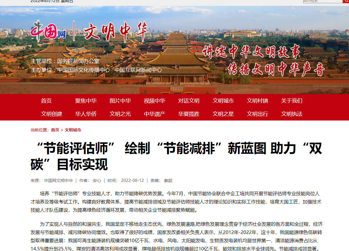 【中国网权威报道】“节能评估师” 绘制“节能减排”新蓝图 助力“双碳”目标实现